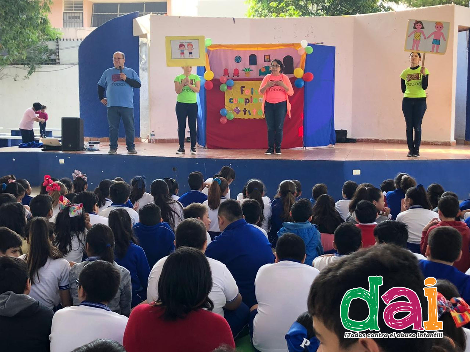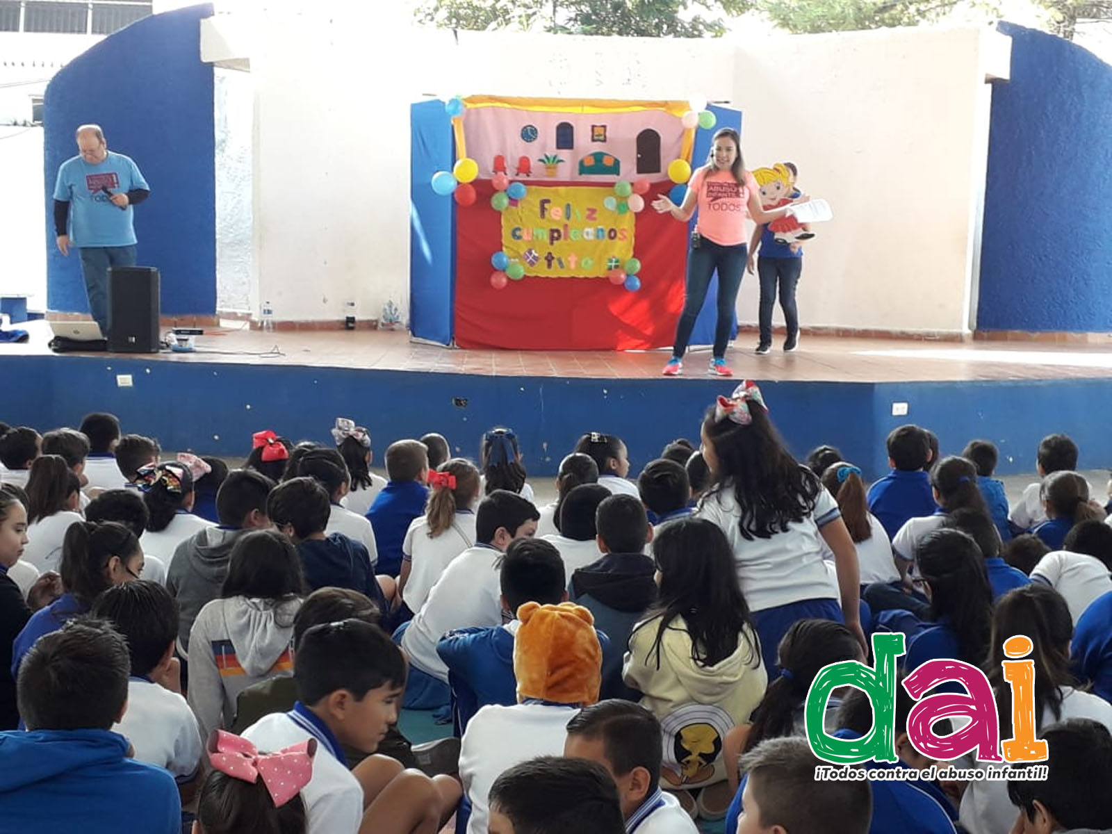 El equipo de DAI participó en una escuela primaria del sur de Monterrey con la obra «El Cumpleaños de Tita». Aproximadamente 430 niños recibieron de una manera sencilla y divertida el entrenamiento para prevenir un abuso sexual.